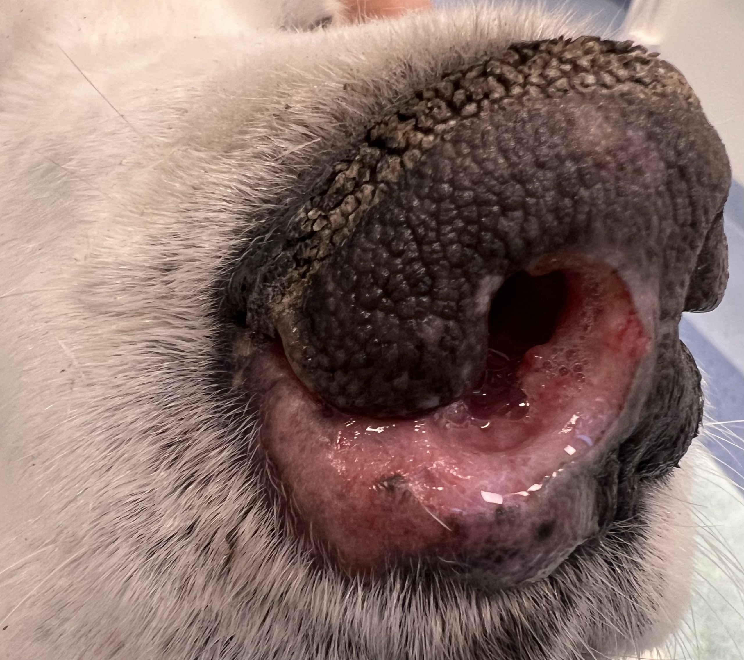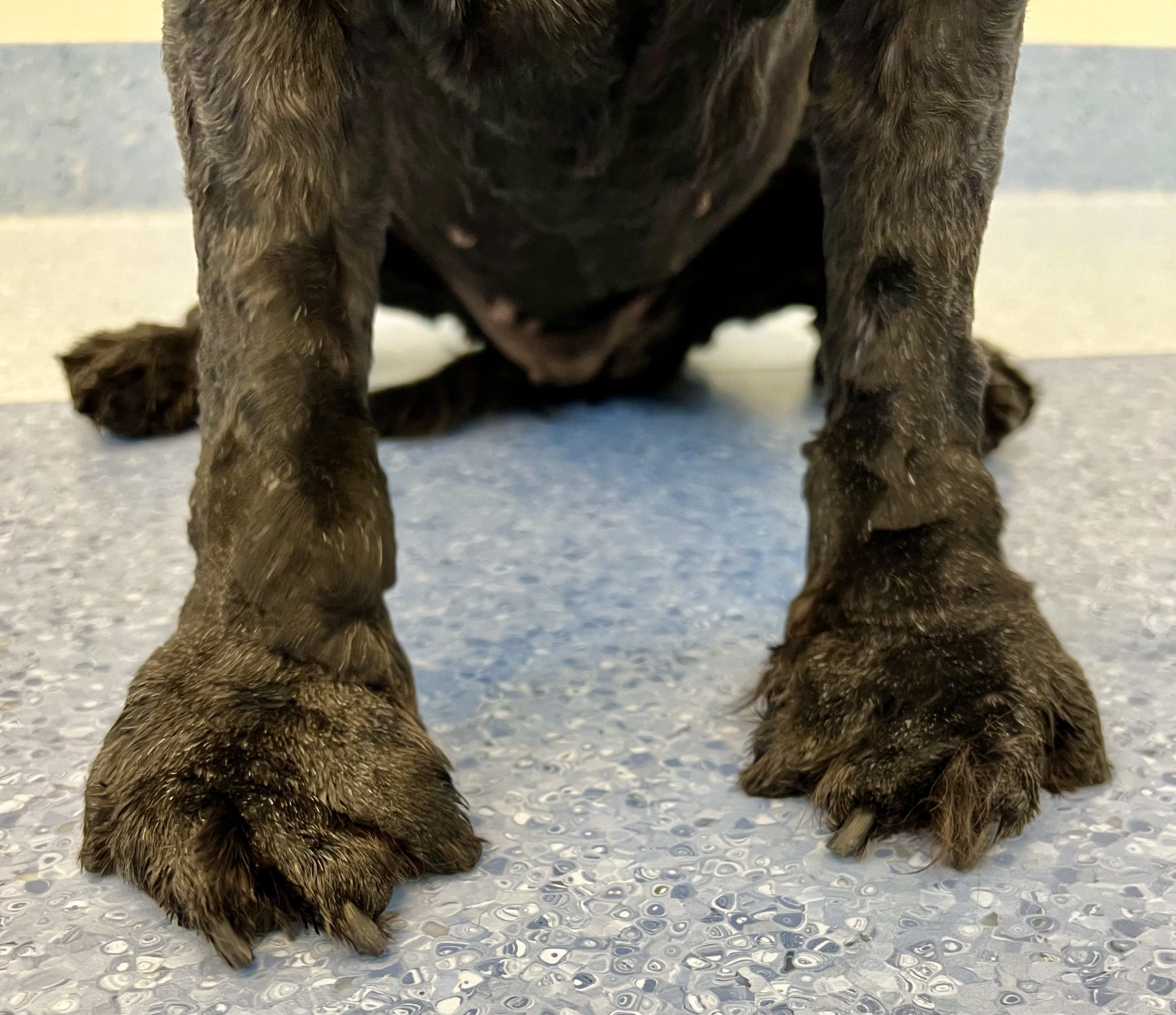 Vid det akuta förloppet ges oftast smärtlindring och klor som är lösa och gör ont kan behöva plockas bort. För att förhindra fortsatt förlopp behandlas dels med extra fettsyretillskott av omega 3/6 fettsyror och mediciner som  exempelvis kortison .